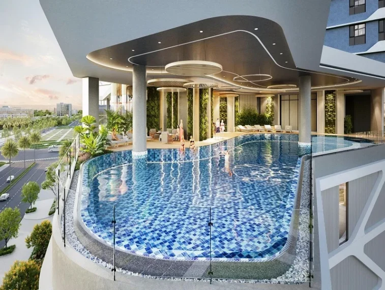 + Tầng 5: Hồ bơi view biển và thành phố cực chill, kết hợp cùng Pool Bar, Hacom Spa và Fitness giúp bạn tái tạo năng lượng mỗi ngày.